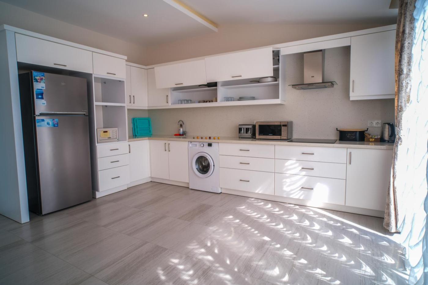 Deluxe Apartment. This apartment features a hot tub and a sauna. Boasting a private entrance, this air-conditioned apartment features 1 living room, 2 separate bedrooms and 2 bathrooms with a walk-in shower and a bath. The well-equipped kitchen has a stovetop, a refrigerator, kitchenware and a microwave. The spacious apartment features a flat-screen TV with satellite channels, a washing machine, a tea and coffee maker, a seating area as well as sea views. The unit has 4 beds.