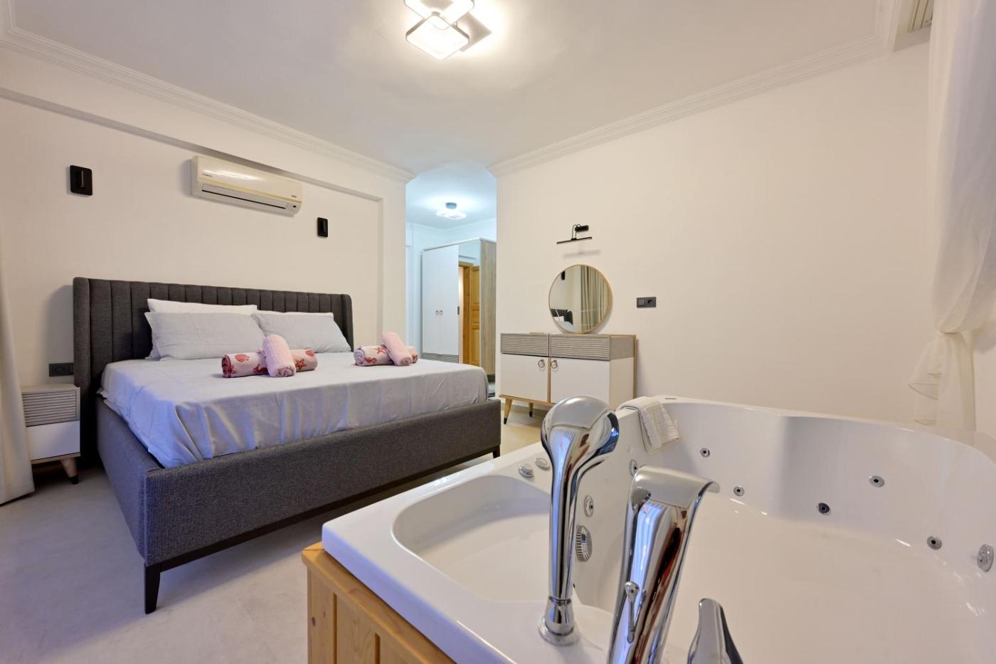 Deluxe Villa. This villas standout features are the private pool and hot tub. This spacious villa includes 1 living room, 2 separate bedrooms and 1 bathroom with a hairdryer. The villas kitchen is available for cooking and storing food. Boasting a terrace with garden views, this villa also offers air conditioning and a flat-screen TV. The unit has 3 beds.